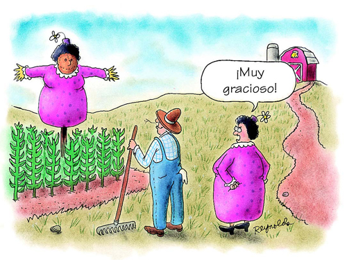 Pepito responde: "Fácil maestra, the cat cataplum in the water glugluglu and no more miau miau"...